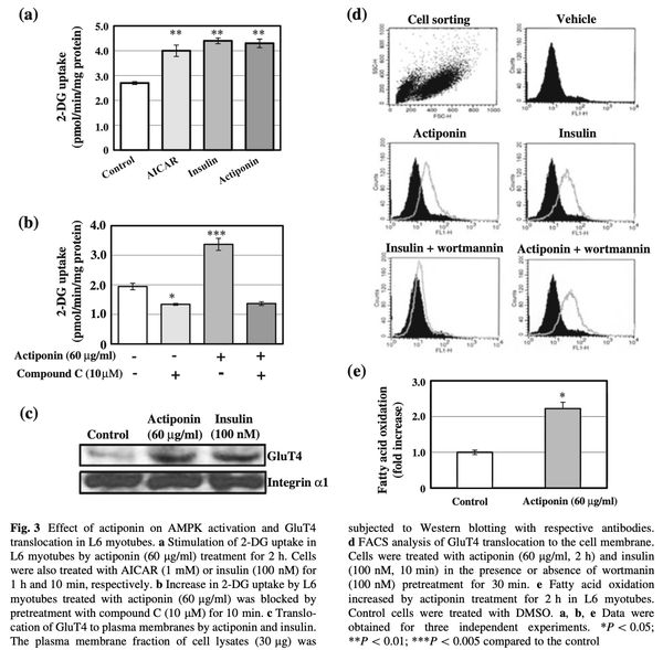 In clinical studies, a heat-processed extract of G. pentaphyllum containing Damulin A and Damulin B stimulated fatty acid β-oxidation, glycolysis, and glucose uptake by activating AMPK. This extract (referred to as "actiponin" in the figures below) inhibited the formation of fat cells and increased the oxidation of fat cells. In other words, it burned fat—effectively and safely.