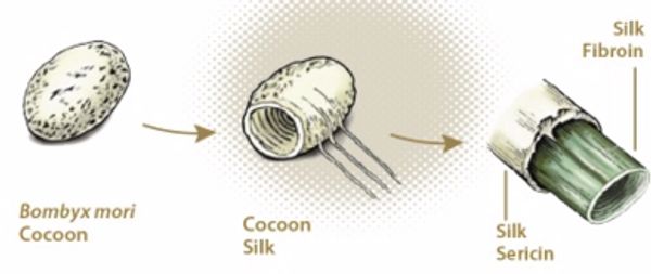 Silk fibroin is an insoluble protein created by the larvae of Bombyx mori—better known as the silkworm—and other types of moths, such as Antheraea, Cricula, Samia and Gonometa, as well as spiders. Fibroin is the structural center of the raw silk that these insects manufacture in order to make their cocoons and spin their webs. When found in nature, silk fibroin is surrounded by a sticky material called sericin.