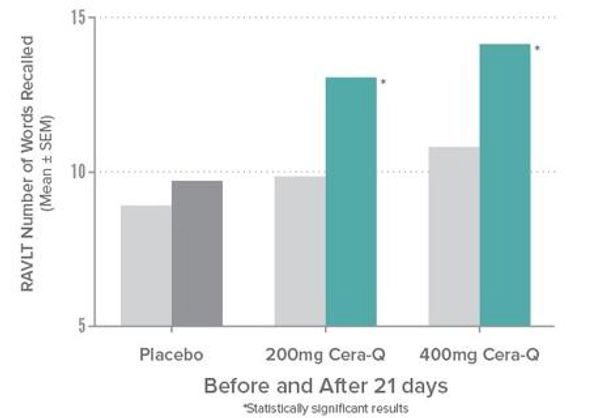*40 healthy high school students · K-WAIS memory & concentration test · 30-day trial of two groups, one group taking 400 mg/day of Cera-Q + EPA/DHA fish oil, the other group taking EPA/DHA only · Published study